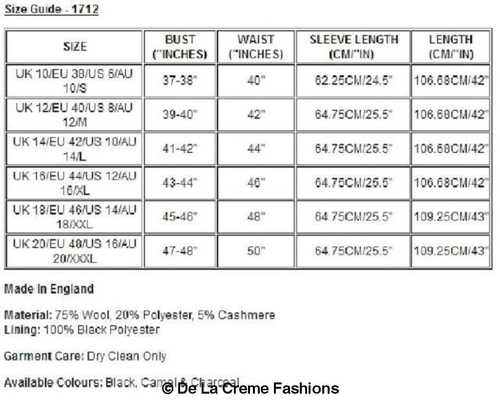 Material: 75% Wool, 20% Polyester, 5% Cashmere